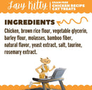 Chicken, Brown Rice Flour, Vegetable Glycerin, Barley Flour, Molasses, Bamboo Fiber, Natural Flavor, Yeast Extract, Salt, Taurine, Rosemary Extract.